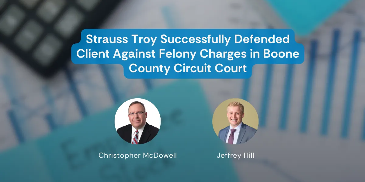 Strauss Troy Shareholder Christopher McDowell and Associate Jeffrey Hill secured a hung jury with a 9–3 vote for acquittal in a Boone County felony trial.